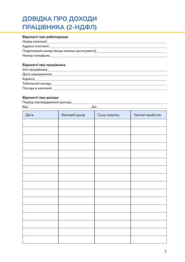 Довідка про доходи працівника (2-НДФЛ) — це офіційний документ, що містить інформацію про суми доходів, які працівник отримував протягом звітного періоду, а також про суми податків, утриманих із цих доходів. Вона є необхідною для підтвердження доходів при подачі податкових декларацій або для отримання кредитів. Довідка 2-НДФЛ використовується для підтвердження фінансової стабільності працівника, а також є важливим документом для розрахунку податкових зобов’язань.