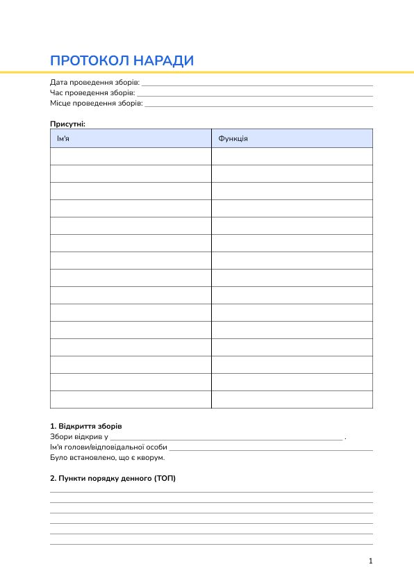 Протокол про порушення трудової дисципліни — це офіційний документ, який фіксує факти порушення працівником правил трудової дисципліни, визначених законодавством або внутрішніми нормативними актами підприємства. Метою складання протоколу є документування конкретних випадків порушень, таких як запізнення на роботу, відсутність без поважної причини, невиконання трудових обов’язків чи інші дисциплінарні порушення. Він є важливим етапом в процесі дисциплінарного розслідування та може бути основою для подальших дисциплінарних стягнень або юридичних дій щодо працівника.